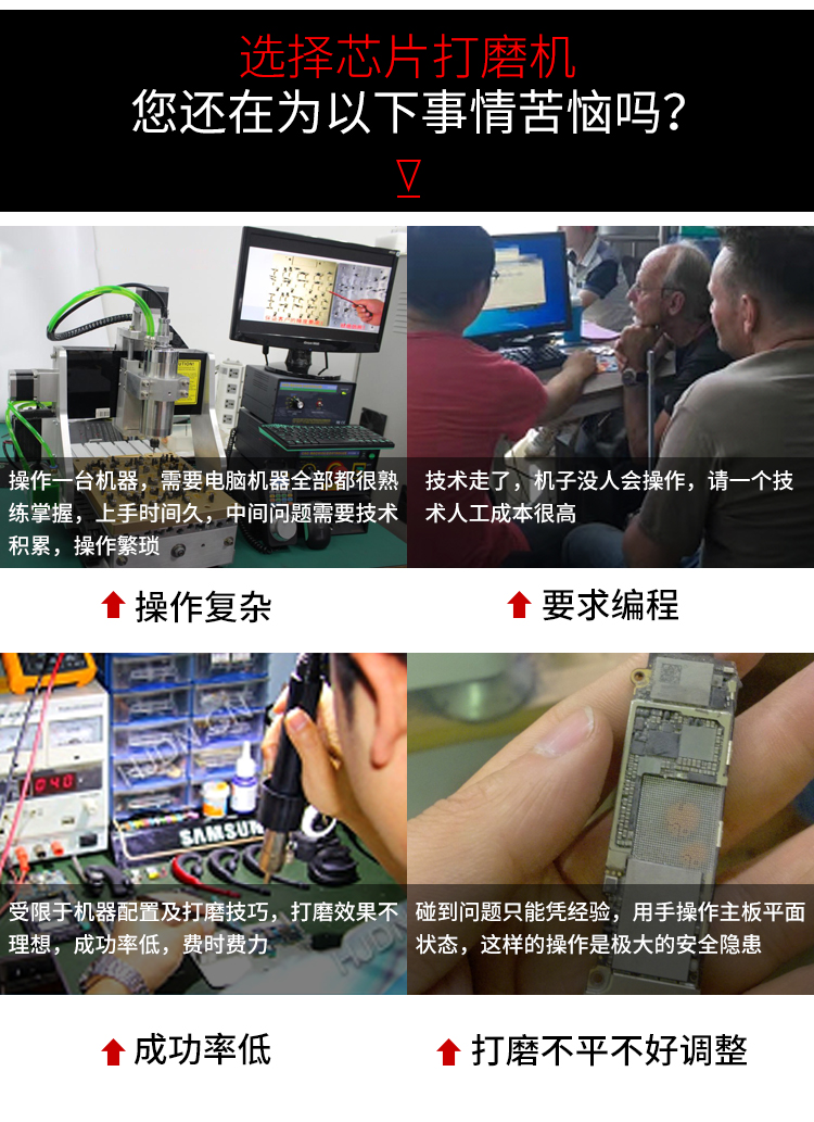 晶研智能BGA芯片拆除機(jī)是由東莞市晶研儀器科技有限公司獨(dú)立研發(fā)的全自動(dòng)BGA芯片維修平臺(tái),配合相應(yīng)高精度定制模具可對(duì)各種類型的IC芯片進(jìn)行拆除或者打磨,效果優(yōu)秀。晶研智能BGA芯片拆除機(jī)采用進(jìn)口耗材,整機(jī)的裝配都經(jīng)過(guò)嚴(yán)格的把關(guān)。拆除機(jī)以其獨(dú)有的平面度檢測(cè)功能使得打磨變形的BGA主板更加精確簡(jiǎn)單。