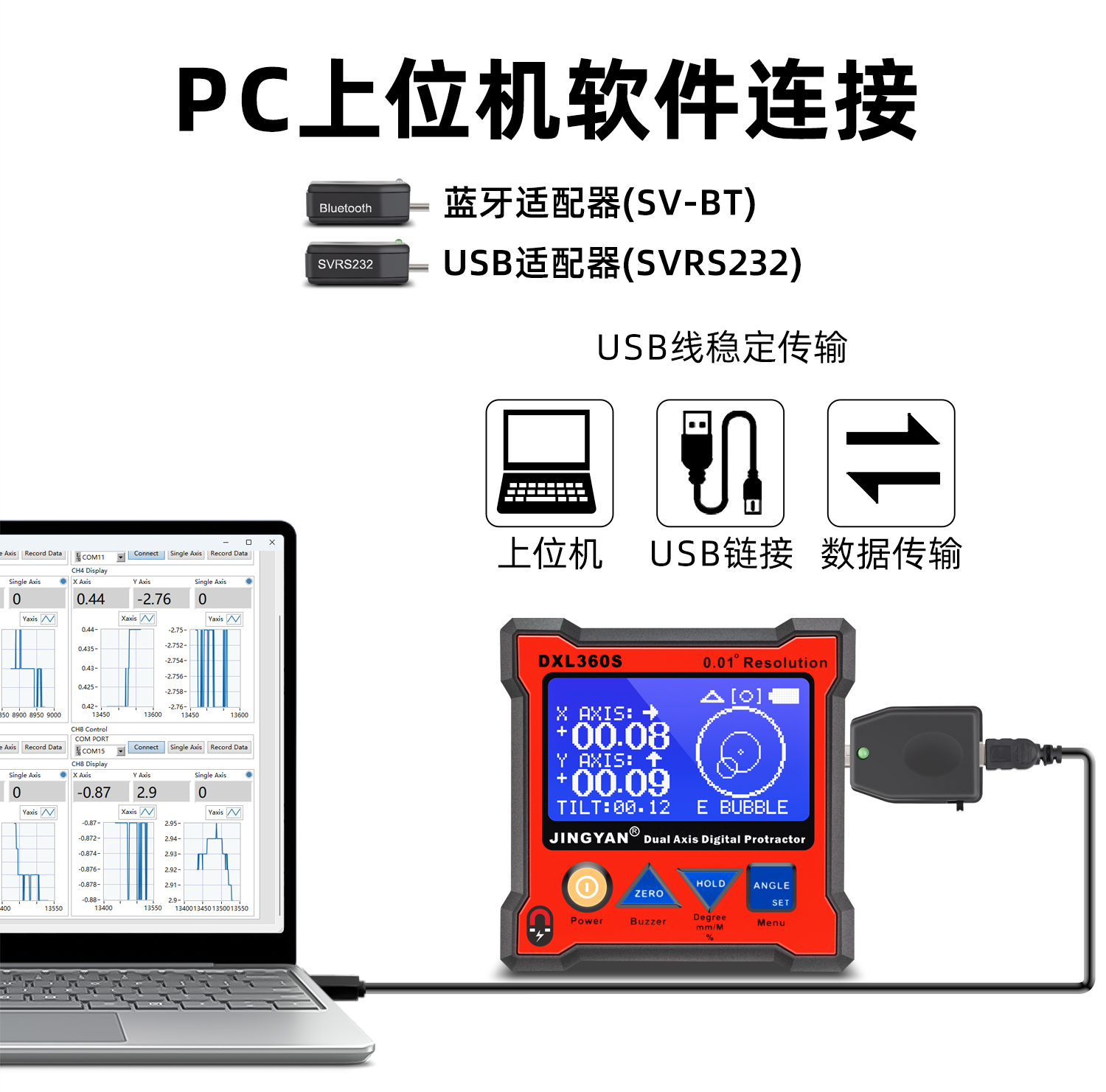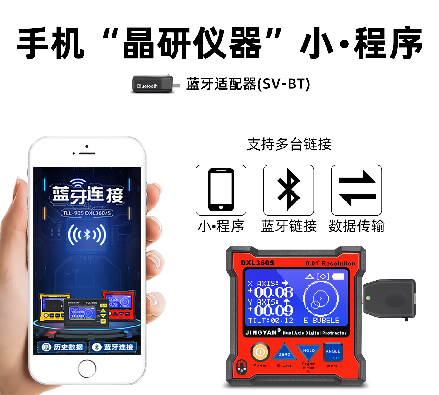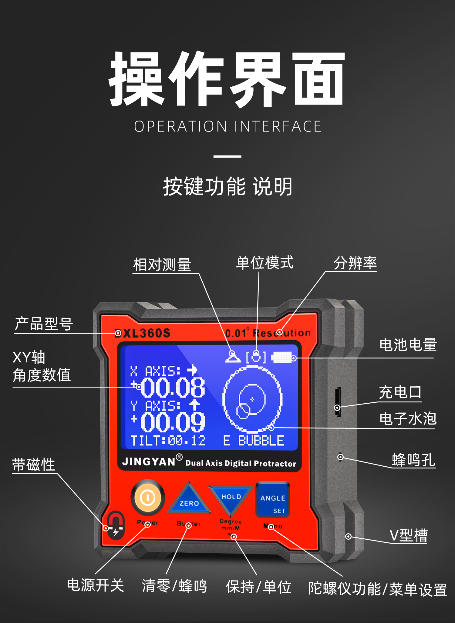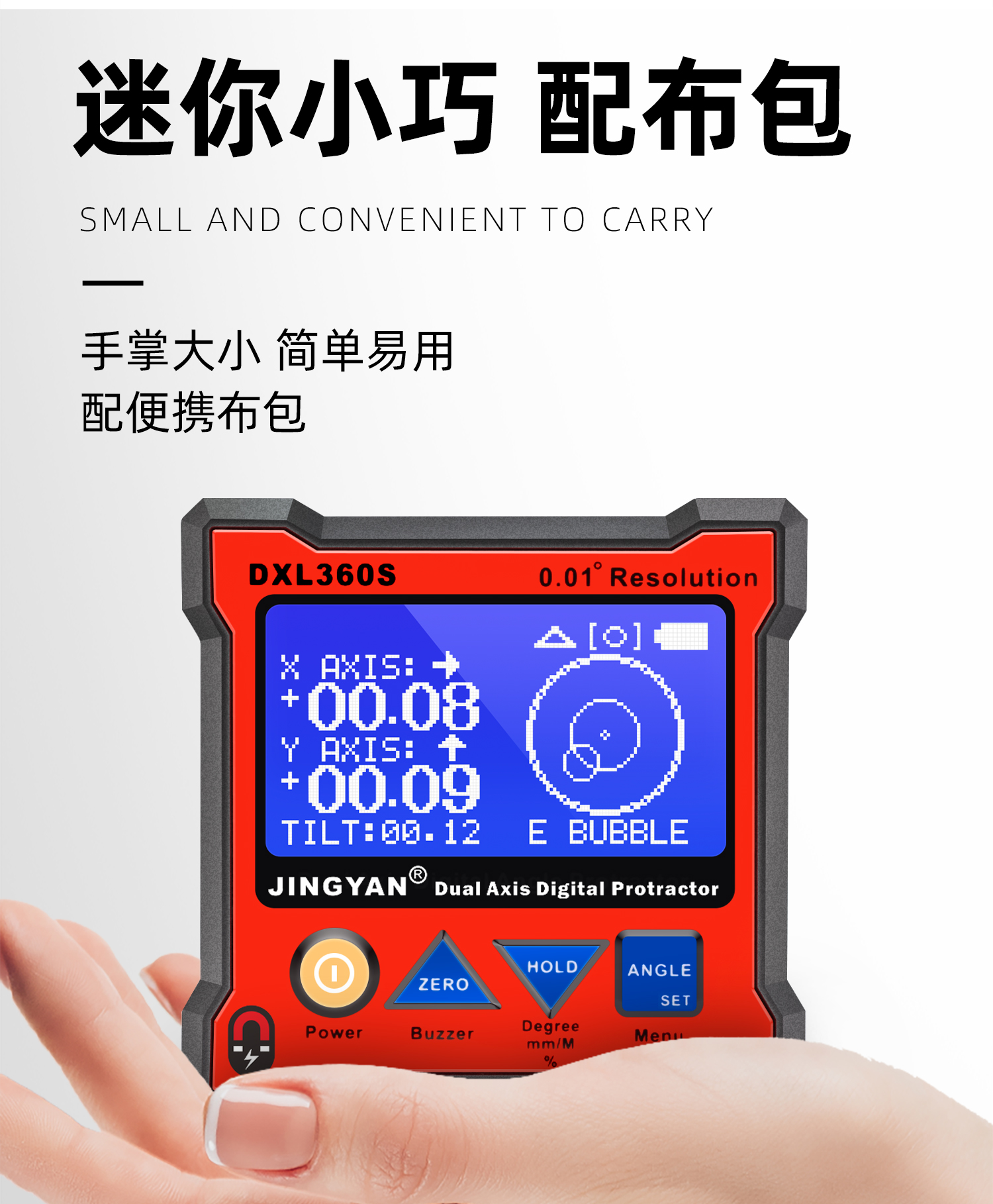 DXL360/S是一款專(zhuān)業(yè)測(cè)量水平和空間相對(duì)夾角(*DXL360S專(zhuān)有)的高精度數(shù)顯傾角儀/水平儀,它基于微機(jī)電系統(tǒng)(MEMS)的先進(jìn)技術(shù),結(jié)合優(yōu)化的補(bǔ)償模型算法,保證傾角儀測(cè)量的穩(wěn)定性和重復(fù)性。DXL360S精度高達(dá)0.05°,分辨率0.01°,可以采用3種測(cè)量單位顯示(角度、毫米/米、斜率),特有的空間相對(duì)夾角功能(GYRO),可不受環(huán)境限制,測(cè)量任意平面之間相對(duì)夾角,陀螺儀測(cè)量精度±0.5°。DXL360實(shí)現(xiàn)最好精度0.1°,分辨率0.02°,可以采用2種測(cè)量單位顯示(角度、毫米/米)。DXL360/S支持單軸4×90°,雙軸±40°測(cè)量,底部和背部測(cè)量基準(zhǔn)面有強(qiáng)磁性,V型凹槽設(shè)計(jì)便于放置在圓管上進(jìn)行測(cè)量。雙重?cái)?shù)據(jù)存儲(chǔ)功能,連接電腦或手機(jī)進(jìn)行數(shù)據(jù)傳輸。DXL360/S廣泛應(yīng)用于機(jī)械制造、汽車(chē)維修、醫(yī)療行業(yè)、木材加工、通訊檢測(cè)、家居裝潢等用途。DXL360/S以其豐富的功能和實(shí)用性,廣受全球客戶(hù)青睞。